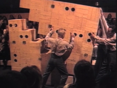 "C’est un procès. Un espace contracté où siège un aéropage d’hommes savants pour lesquels la question de ce qu’est ou n’est pas une œuvre d’art, se pose. Comme toujours et partout, deux paroles, deux mondes, deux vérités s’affrontent et se font face. Incommunicantes. Le savoir et la connaissance. Et puis, comme sur une pente déclive, "L’Oiseau" se dématérialise et s’éparpille dans l’espace tandis que la parole se dilate et prend corps dans un autre lieu. Le lieu des champs sonores. C’est un forum, un espace publique où siège la Conférence des oiseaux, où les acteurs tel les anges de WIM WENDERS dans LES AILES DU DÉSIR tentent de redéfinir les règles de fonctionnement du monde par la maîtrise de la parole. La question est dans le vent, le vol et l’envol du sentiment. La question est dans le verbe qui participe de la création du monde. Comment en inventant le mot, on invente le monde. La question est comment l’art dramatique peut en rendre compte. C’est une hypothèse de travail !"